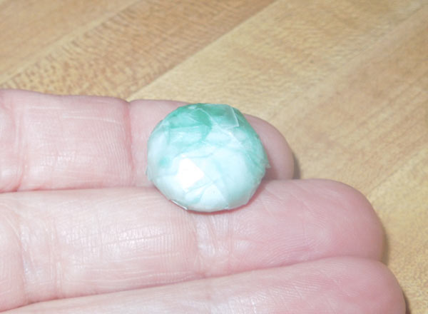 Wrapping a Mentos with breath strips was challenging. They wouldn't stick while dry, but with too much water they dissolve into a sticky green mess. With practice I managed to create a solid shell of strips.