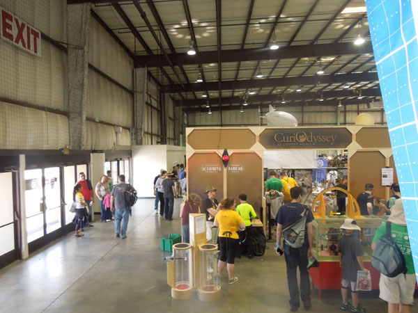 The CuriOdyssey booth had a brilliant, brilliant display which demonstrated mechanical gears, gates and motivators. The two-sided glass display gave kids a single tool to help motivate small balls through a course of tubes through the machine.
