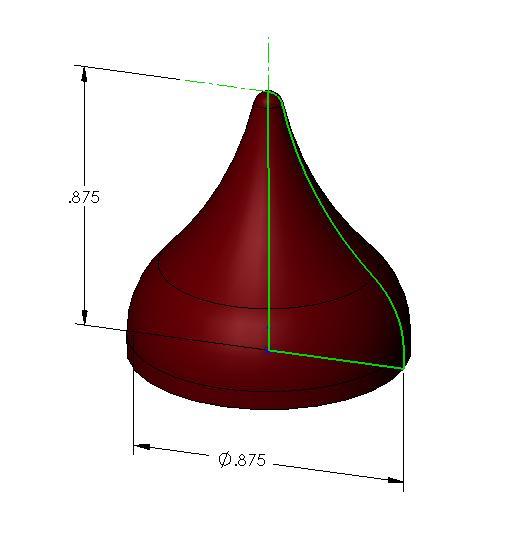 Treating it like a regular cone, I could multiply 1/3rd of the base area x height (0.215 inches3), but that wouldn't get anywhere close to the correct answer. That's only a fourth of a cubic inch. The only way 4.65 of these kisses are going to fit into one single square inch is if I melt them down first.
