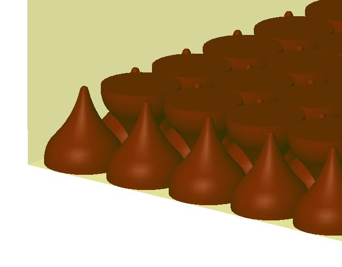 So, my answer is ( 558.4 in3 ) x (2.28 kisses / in3) = 1,273 kisses in the box. Please guess close to that number. The correct answer will probably be very close to that number. The only unknown is the density of the kisses, which going to be in the 2.25-2.40 kiss / in3 range. (1,256-1,340 kisses in the box) Now go! Make your guess at the address below and if you win, remember, it was your density. |