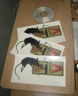 Lifelike Oversized Trapped Mouse Stickers! Low-tack vinyl has two desirable characteristics. First, it is plastic, which gives it the appearance of a bumper sticker. Second, it has a new style of adhesive on the back, allowing it to be easily removed without leaving residue.