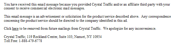 Maybe the nine-fold spamming CEO lives between these two New York towns.. or maybe he has never been here at all. |