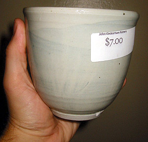 In this photo, you can see an old label, advertising the pot for $7.00. I'm interested in seeing if this auction will end above or below this amount. |
