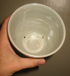 It was handmade, glazed and fired by my father John Cockerham. In this photo, you can see the drainage holes. |