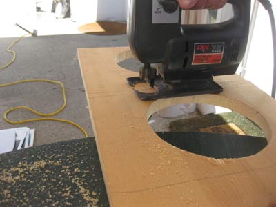 I cut identical holes into two pieces of lumber and sandwiched a plastic sheet between them. I figured the only place the plastic could go was down, drooping into a nice smooth bubble.