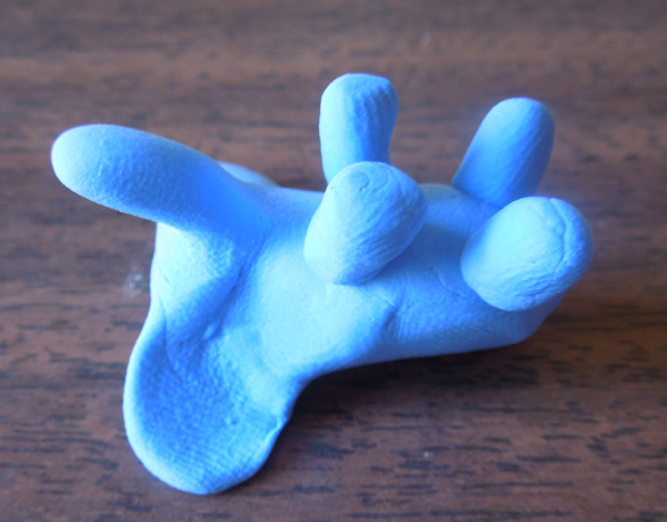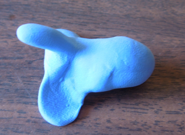 The map layout indicated a tiny Dumbo ride, not much larger than a bagel. I used more air-dry clay to fashion a tiny elephant body, shown here upside down.