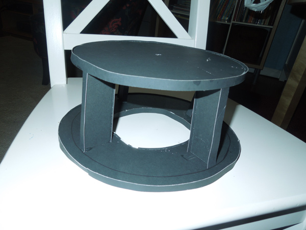 I used two circles of black foamboard to construct a featherweight double-decker turntable.