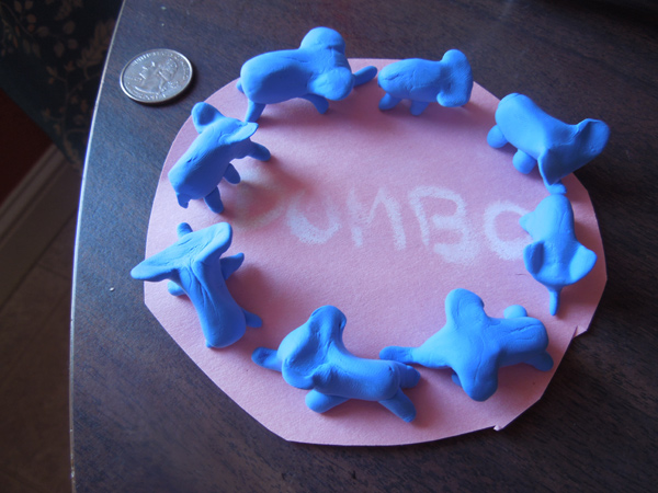 I needed eight, but I made eleven and threw out the three ugliest ones. The elephants ears and legs were actually supposed to be splayed out a bit, because hey, this isn't the walking elephant ride. They are flying!