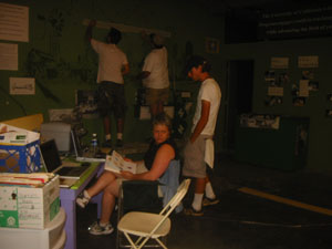 Fast-forward to the night before the fair opens. Victoria is sitting in front of a laptop, printing out last-minute corrections, and everyone else is mounting, matting and hanging signs like madmen. |