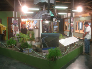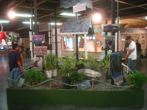 The rainwater display, with plants, signage and photos. My favorite bit was the gardenhose fence rail. Ingenious. |
