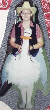 hey rob, this halloween one of my friends was going to be out of town until the night of our halloween party, so she agreed to let me make her a halloween costume. The only stipulation was that she had to wear whatever i made. So of course i made her into a giant box of quaker oats. it is made of four pieces of colored matboard, bolted together (that stuff sure doesn't like to stay bent), and i printed out the graphics. enjoy! -julie http://img.photobucket.com/albums/v79/juliesphotos/quakeroats.jpg