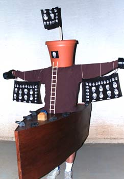 ![]() Dear Cockeyedites, Every year for Halloween, my dad make some big elaborate costume--it's sort of a tradition. This year, we agreed on letting him retire, seeing as how I (his youngest daughter) have decided to retire from Trick or Treating, and it's only fair. Thankfully, he went out with a bang--from the cannons on his costume, that is. This year, he created a pirate ship, which he even stained and clear-coated (yes, it's real wood), and then named after me. I hope you'll enjoy our pictures! Thanks for you time, Ashley Williams