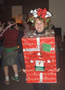This year I decided to go as a christmas present. While it wasn't super creative, it won me an ipod and first place at a costume competition. It also got a lot of laughs! The costume was really fun to dance with- I could shake the bells and move the box to the beat of the music! Hope you and your family had a great halloween as well! -allie