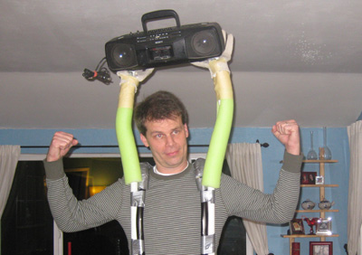 Other guests had one complaint, and knowing the secret of the costume didn't dispel the illusion: Seeing me with my arms up all night made their arms hurt! |