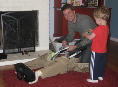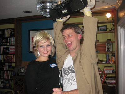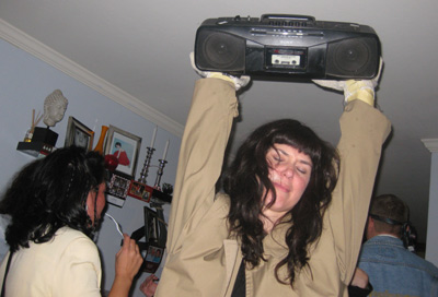 The costume was a hit. It was comparatively lightweight and comfortable. Tthe party was a success! The radio worked, but tragically the tape player was more interested in chewing tape than playing it. However, being an 80's party, there was plenty of Peter Gabriel being played, so it worked out well. Meaghan's house had ceilings which were tall enough to handle the elevated boombox.