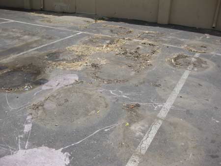 On a recent lunchtime shortcut, I spotted a sweet spot for some illicit guerrilla gardening. A tight group of cement planners had been relieved of their duties and were being stored in a quiet corner behind the strip mall at the Raley's Supermarket on Folsom. The retired planters were filled with spider webs and dead weeds, but they had lots of potential. The shape was not unattractive and they looked like they could stop a tank. The dead brush looked superficial. The planters were tall, which meant that plants in them would be nicely positioned for care. Also, this spot looked like it would get full sun for 8-10 hours per day. |