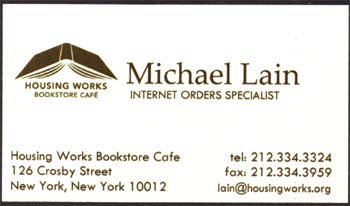 Housing Works Bookstore Cafe Michael Lain Internet Orders Specialist |