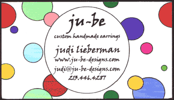 custom handmade earrings judi lieberman Ju-be is a line of fun, fashionable, and affordable earrings. Materials include glass beads, semi-precious stones, and sterling silver / 14k gold-fill findings. |