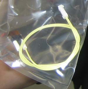 Let me tell you. This incredible packing job was not in vain. The sensor assembly arrived in fine shape. Unfortunately, that bright yellow wire was going to clash horribly with the printer's circuitry. We packed it back up to exchange for a white one.