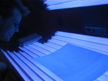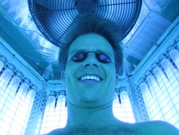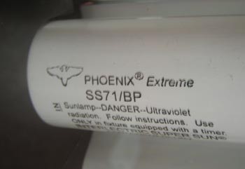 After eight tanning sessions, our friend Tom mentioned that Stacy and I looked pretty darn tan. No one at work had yet noticed. We had one more tanning session in the regular tanning beds (16 & 16 minutes) and Stacy decided to give the "express" tanning beds a try. The express beds had Phoenix Extreme SS71 bi-pin lightbulbs. They were so powerful that Mohammed Al-Baradei himself had to come by to inspect these bulbs at least once a year. |