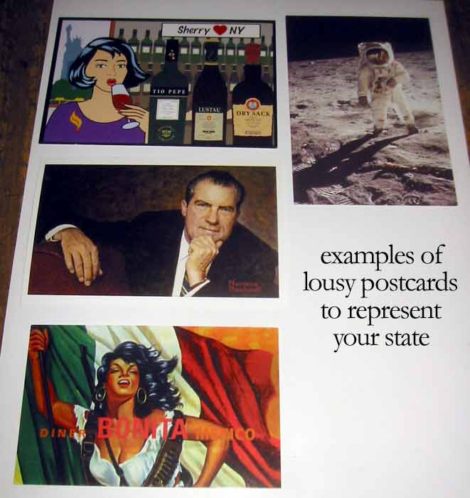 If you are like the idea, and you would like to make the solid commitment to send 50 postcards, please send me an email with your... Name, school name and address, grade level, room number and phone number. Only the first responding schoolteacher from each state will be included in this first round. If it looks as if it is going to be a success, I'll set up a second round at that time. |