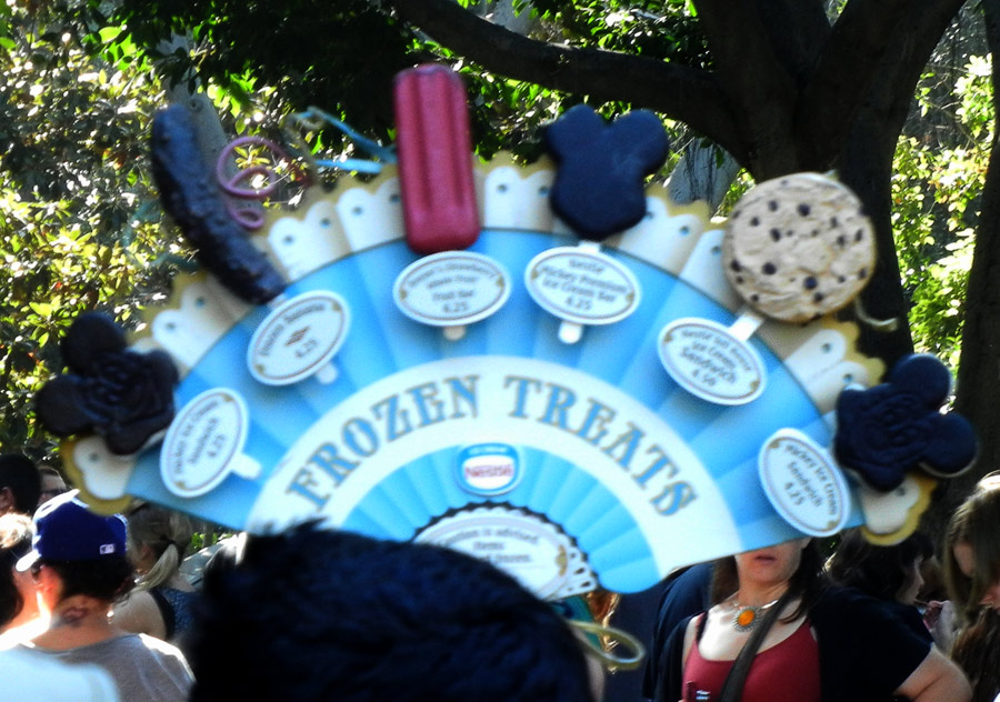 I guess Disneyland's Ice Cream signs aren't unique. A few carts share this design. Fruit Bar $4.25, Ice Cream Bars $4.25, Ice Cream Sandwich $4.50.