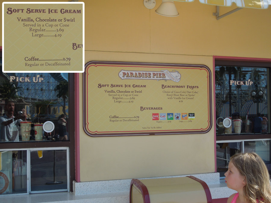 Disneyland and California Adventure have a bunch of unique little menu signs throughout the parks. They are clean, nicely designed and legibile.