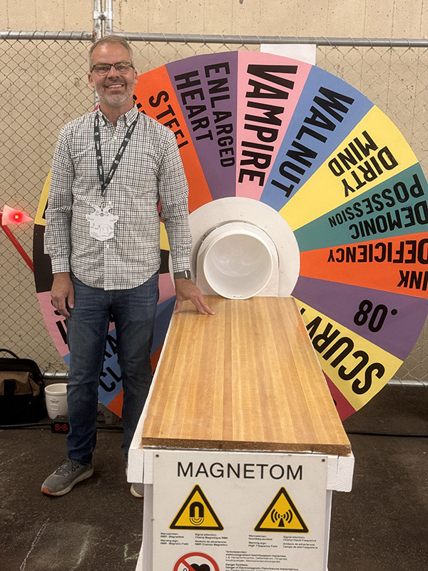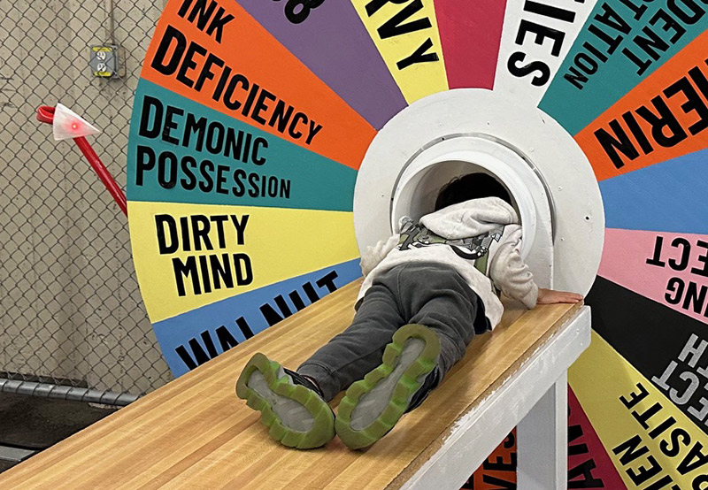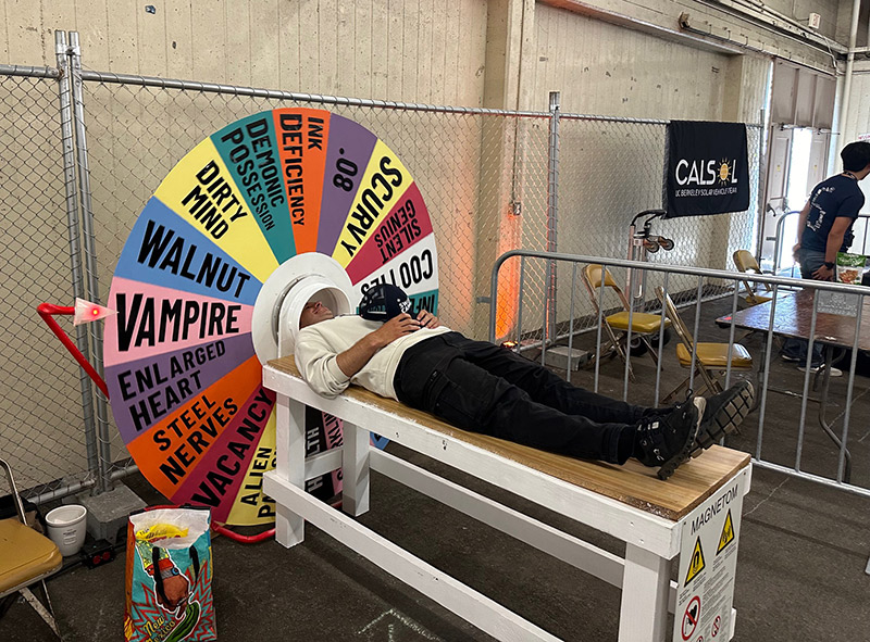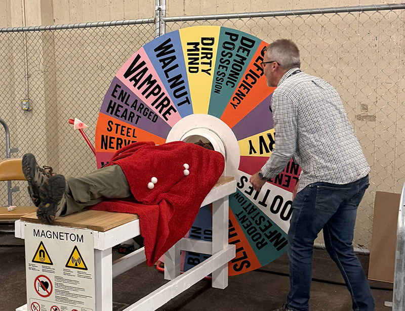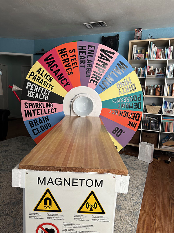 I didn't want to show the same Wheel of Fortune from 2023, so I submitted a proposal to exhibit the "MRI of Fortune", a flat table that worked like an MRI machine, but had a whimsical spinning wheel that determined your ailment/superpower.