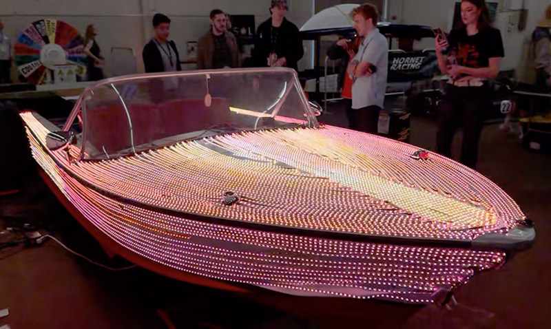 This boat-car lightshow had six or seven musical lightshow sequences, which always drew a crowd of admirers. The sheer number of addressable LED lights put out a ridiculous amount of light.